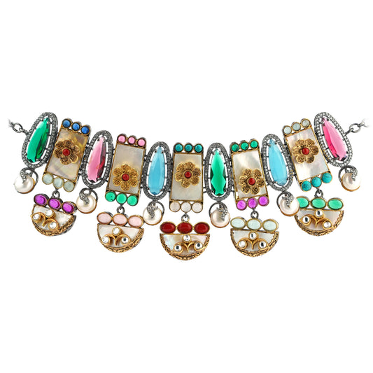Kundan is a traditional form of gemstone jewelry that originated from the royal courts of Rajasthan and Gujarat, India. It involves glass pieces embedded in gold to create masterpieces. Kundan jewelry sets are no less than a piece of art!