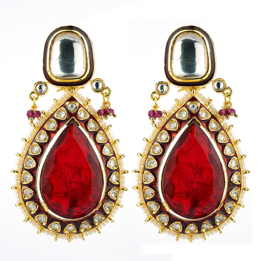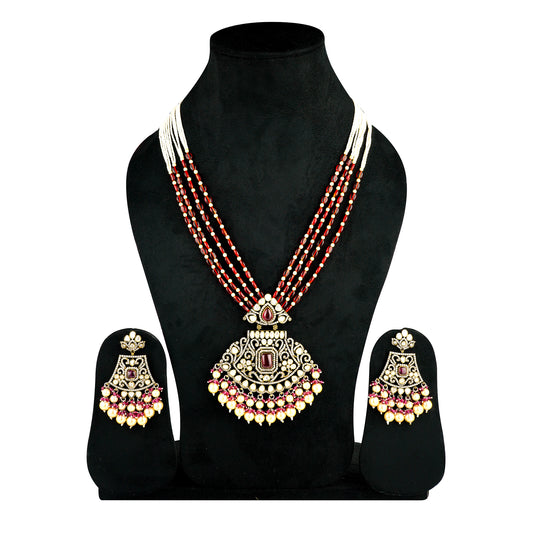 Shanadar Pearl Ruby Red Kundan Set