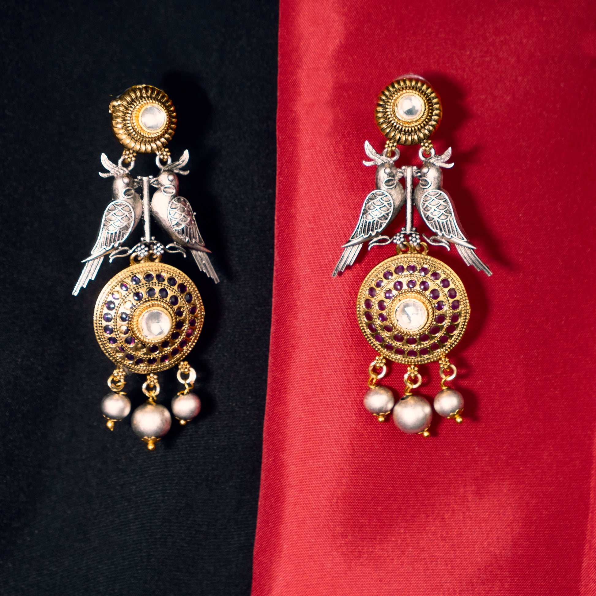 Indulge in the thoughts of Spring fluttering across the grass, tiny birds cooing and swaying gently in the young wind of May. These earrings capture this wondrous feeling with 2 tiny birds and a gemstone to enhance the look.
